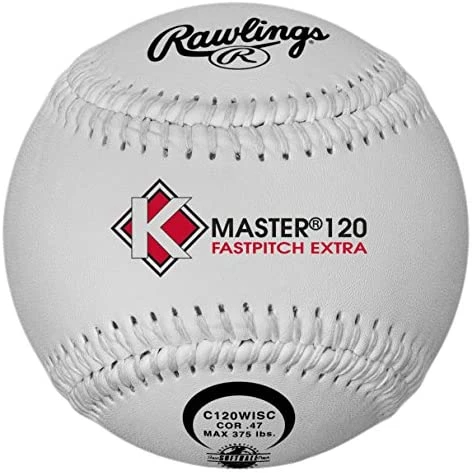 This 12″ K-Master is USA and NFHS approved. With red stitches, the ball has a Syco cover and a Poly-X Core. It is a .47 COR and a 375 lb compression.