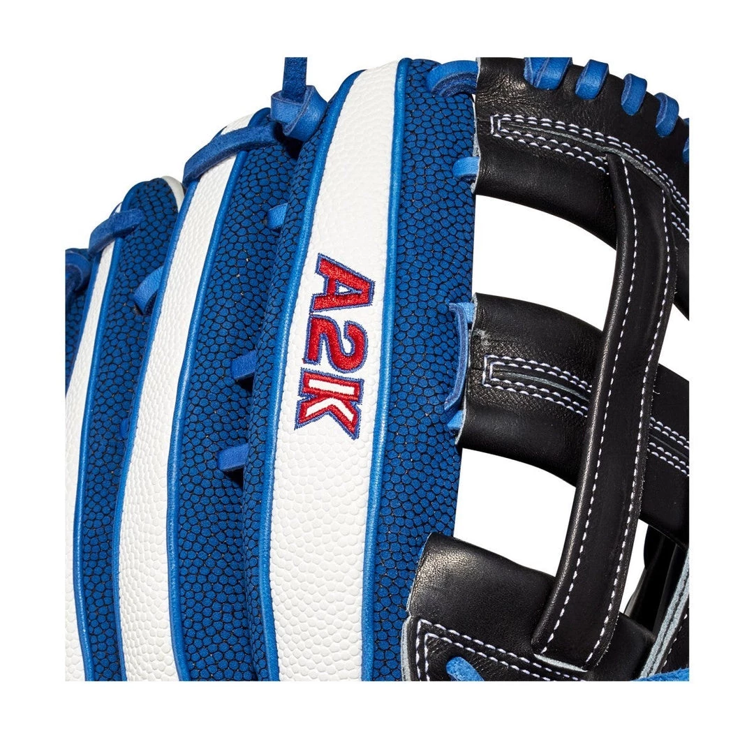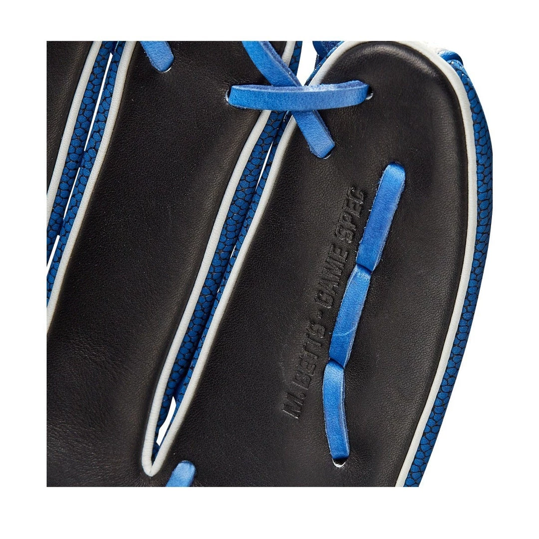 Mookie Betts and his all-new A2K MB50 GM were built for the bright lights. Featuring Black Pro Stock Select Leather, White and Royal SuperSkin and a reimagined Bold Logo package, this 12.5″ model is a bit smaller than traditional outfield gloves, giving you more control as you run down balls in the alley and make highlight reel grabs.